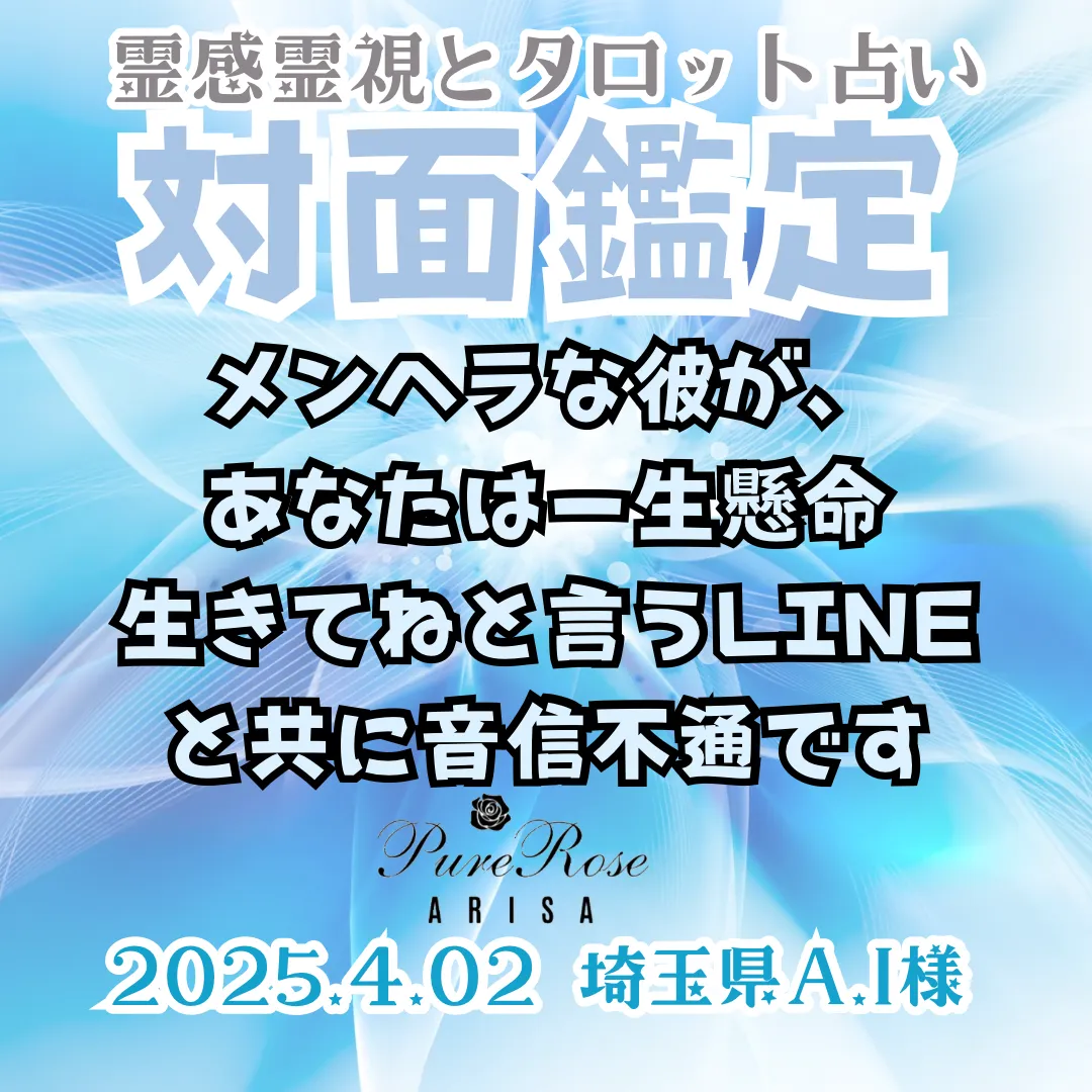 対面鑑定★メンヘラな彼が、あなたは一生懸命生きてねと言うLINEと共に音信不通です★埼玉県A.I様
