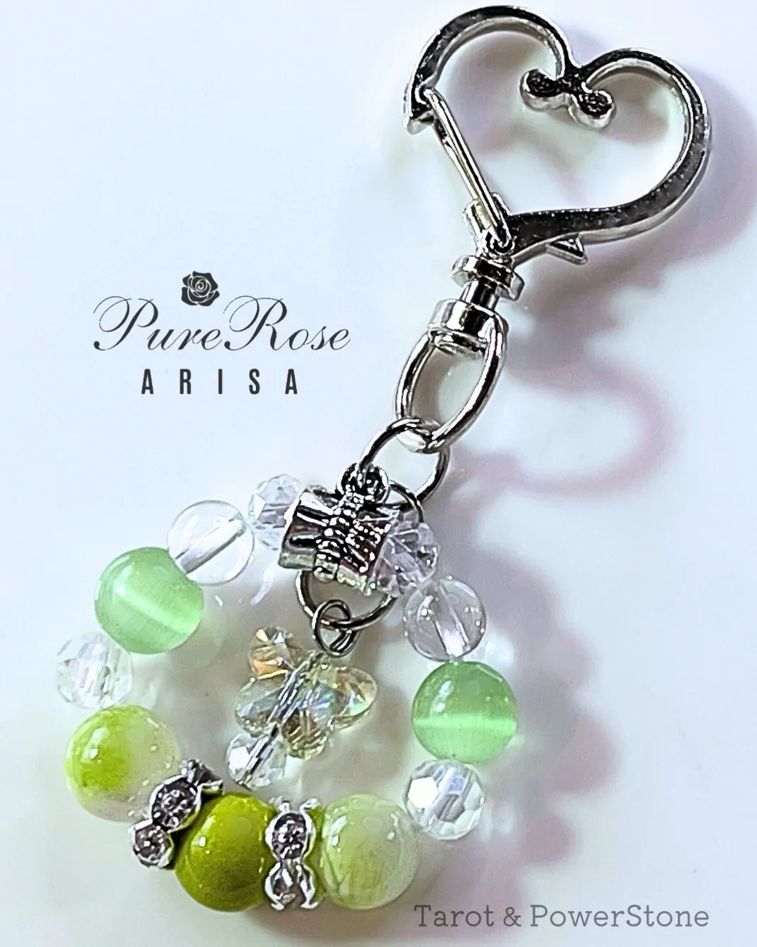 魔除け・厄除け・成功★キャッツアイと翡翠のグリーンキーホルダー★埼玉県Y.I様