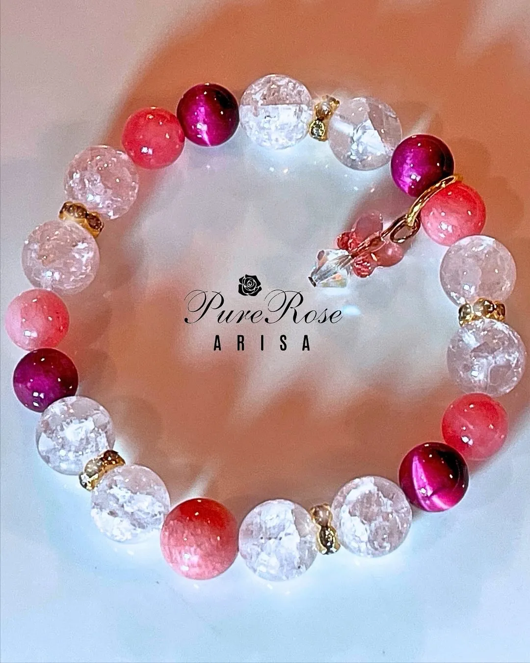 リフォームブレスレット★魅惑の濃いピンクタイガーアイとピンク翡翠で生まれ変わる★埼玉県T.S様