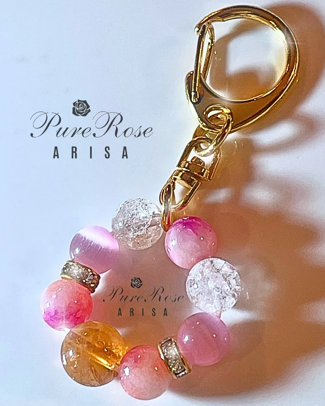 金運・財運・富と幸運シトリンと魔除けのキャッツアイのキーホルダー★埼玉県S.T様