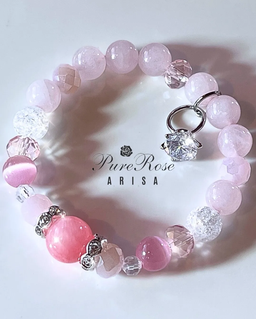 魅力アップのローズクォーツと成功に導く翡翠のブレスレット★埼玉県A.K様