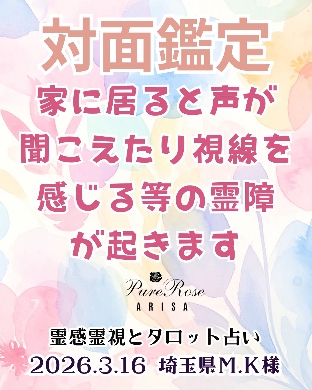 対面鑑定★家に居ると声が聞こえたり視線を感じる等の霊障が起きます★埼玉県M.K様