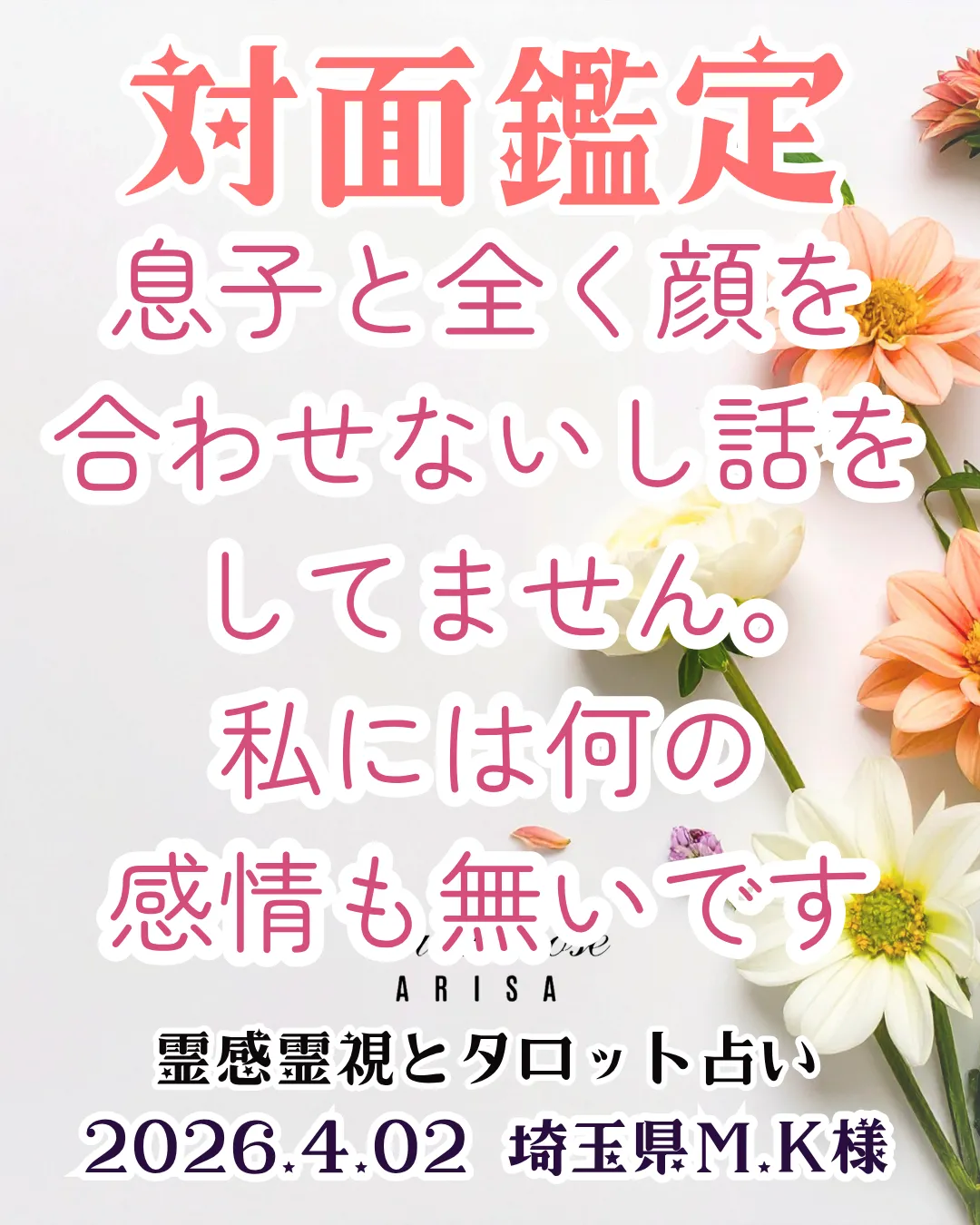 対面鑑定★息子と全く顔を合わせないし話をしてません。私には何の感情も無いです★埼玉県M.K様