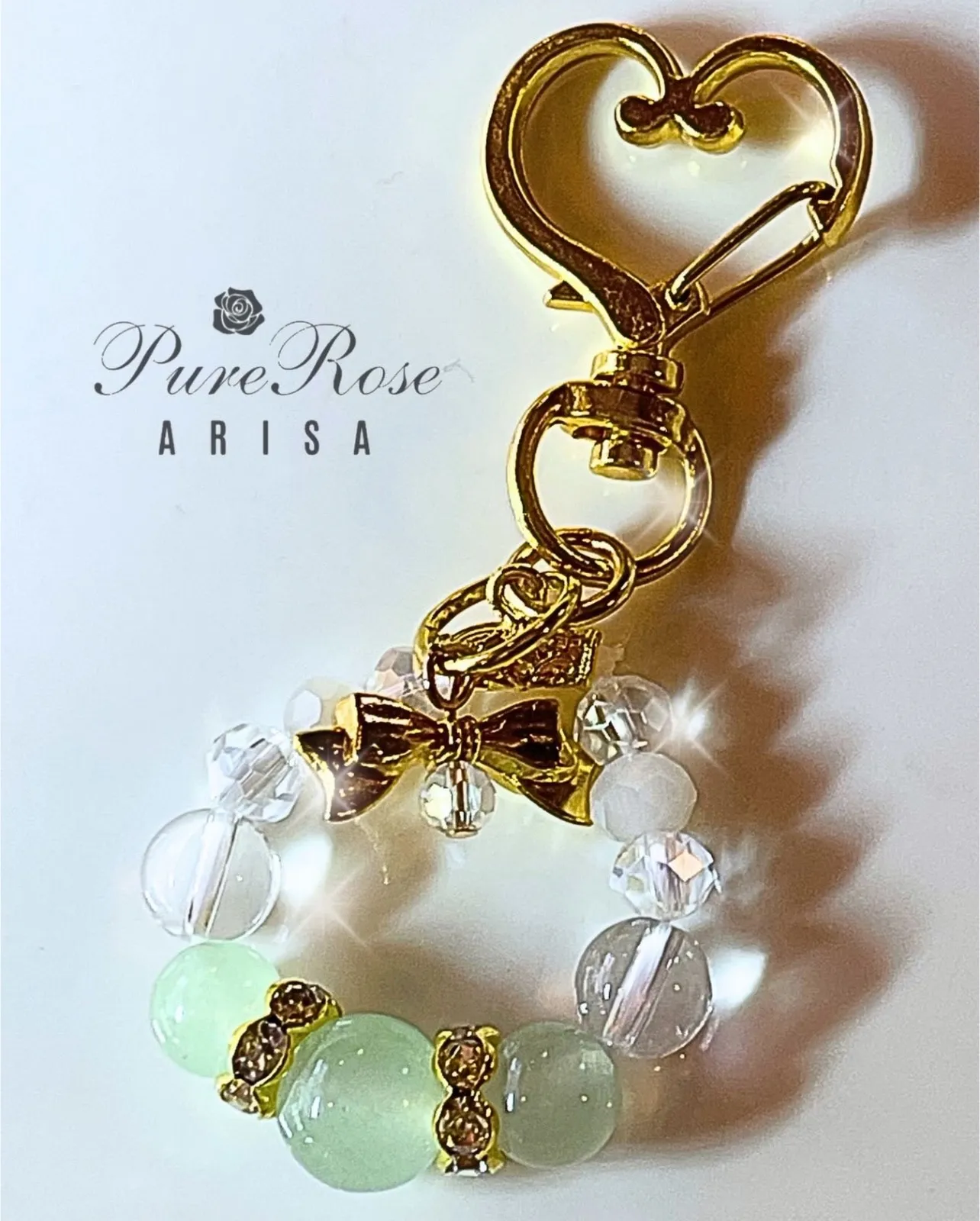 心を癒し良好な人間関係を築くグリーンカルセドニーのキーホルダー★埼玉県Y.N様