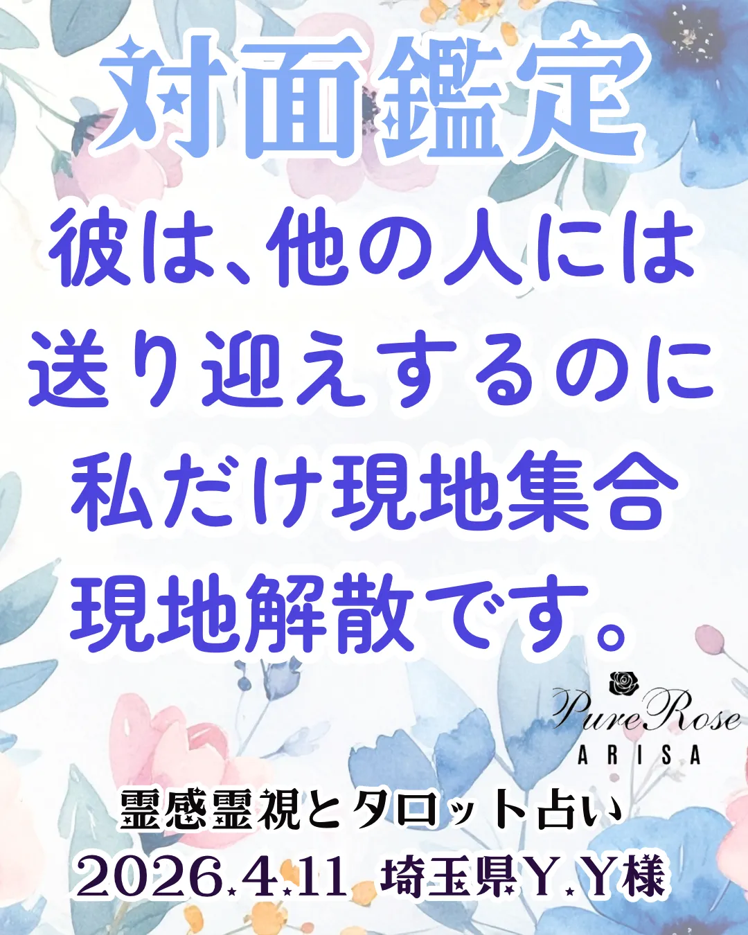 対面鑑定★彼は、他の人には送り迎えするのに私だけ現地集合現地解散です★埼玉県Y.Y様